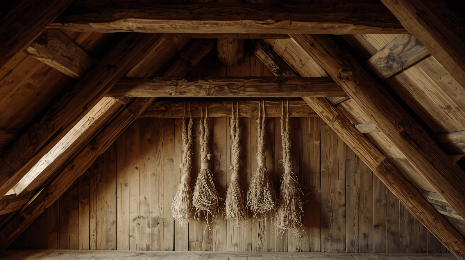 一段、また一段。 階段を上りきった先は、意外なほど清浄な空間だった。 床には塵一つ落ちていない。天窓から差し込む光が、壁に整然と掛けられた農具としての麻縄を照らしている。 「なんだ、ただの物置じゃないか」 一度は安堵し、踵を返そうとした弦一郎の視界が、頭上の巨大な「梁(はり)」を捉えた。